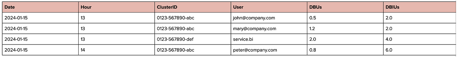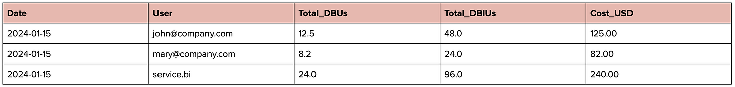 Note: Job clusters don't require this level of tracking since they operate under a single user context, making cost attribution 100% straightforward through the job RunAs.
