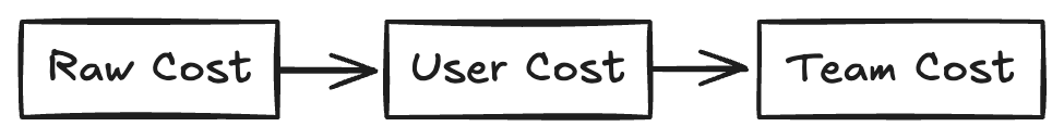 Our cost-tracking pipeline processes data through three essential layers: Raw Cost captures hourly usage data combining DBUs and DBIUs per user per cluster, User Cost aggregates daily consumption patterns for individual users, and Team Cost provides monthly summaries for budget tracking and team comparisons. This structure enables both granular analysis and high-level cost management.